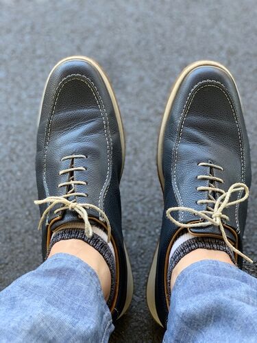 こんにちわ。 今日も暑かった...。 一気に来てますね、夏!? さて、今回もBottierBです。 この靴はレザースニーカーです。 スニーカー、、、ということは、履き心地も・・・・ いえ、履き心地はドレスシューズに近いです! えー!!??? あれだけ厚め…